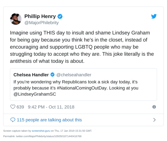 Graham was asked about this at the time and stated, “To the extent that it matters, I’m not gay”.